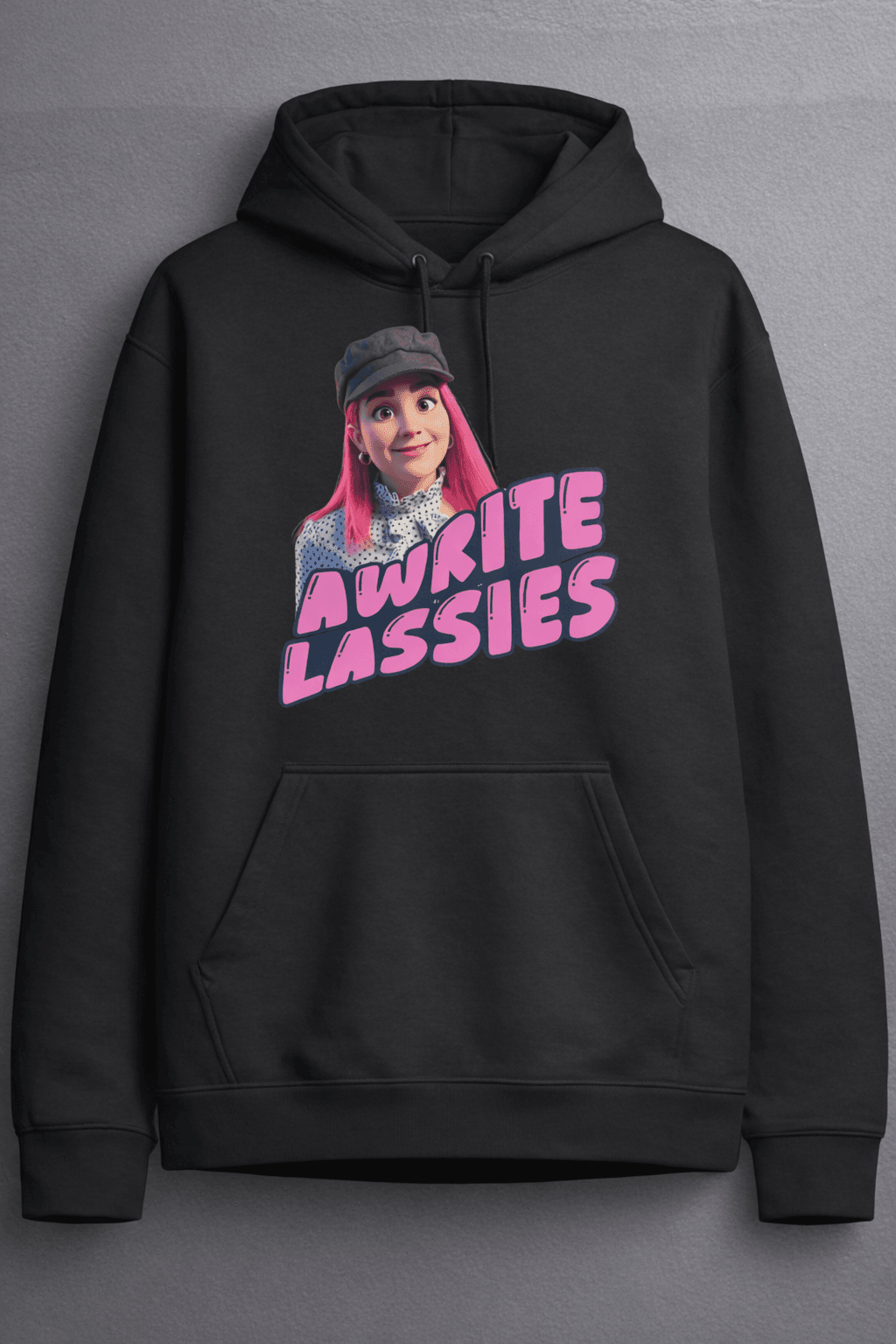 Bring the viral moment to your wardrobe with the “Awright Lassies” Hoodie, inspired by the iconic phrase made popular on TikTok by @Carmencharliethom. If you’ve seen her page, you already know the vibe- cheeky, confident, and full of Scottish personality.
